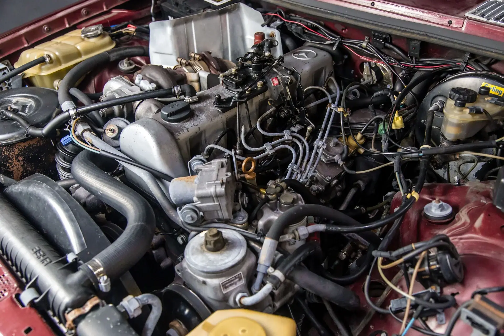 This Mercedes Benz two door 5 cylinder coupe has largely lived in the dry west and southern United States,rust is not a consideration.The car is straight with good body panel gaps,factory straight sheet metal.The interior is clean and crisp.The car comes with nice records including a recent air conditioning service. Paint is good except on the hood of the car.Overall the car is straight,rust free,with a tight,strong run and drive.