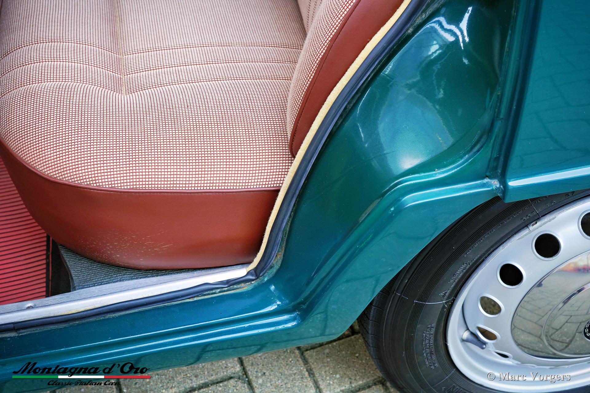 Chassisnummer AR*554287*, motornummer AR*00506*21430*. Exterieurkleur groen (Verde Muschio AR209) gecombineerd met een roodbruin kunstlederen interieur, zwart rubber vloerbedekking en een rode beschermmat van ‘Raid Verest’.