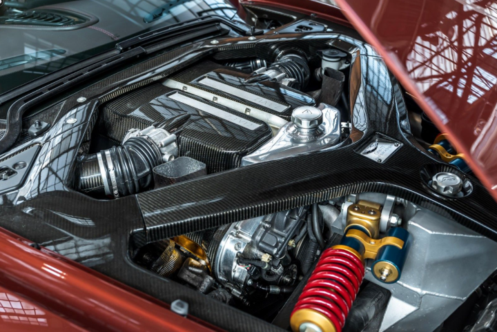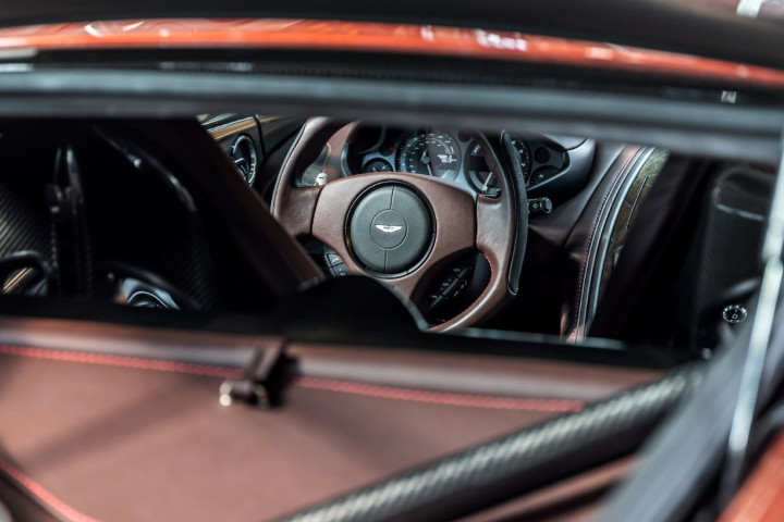 Ein weiterer bedeutender Aspekt des Karosseriebaus ist, dass sie komplett aus Aluminium von Hand gefertigt ist. Es handelt sich um eine Form, die nur durch die Produktion in extrem geringer Stückzahl von Hand möglich war. Dieser Prozess ermöglichte es Aston Martin, eine Form zu schaffen, die mit konventionellen Produktionsmethoden nie möglich gewesen wäre. Es ermöglichte auch, dass das Heck des Autos keine Spaltmaße aufweist; nur ein nahtloses, von Hand geschlagenes Stück Aluminium. Es ist wirklich ein wunderschönes handwerkliches Meisterstück