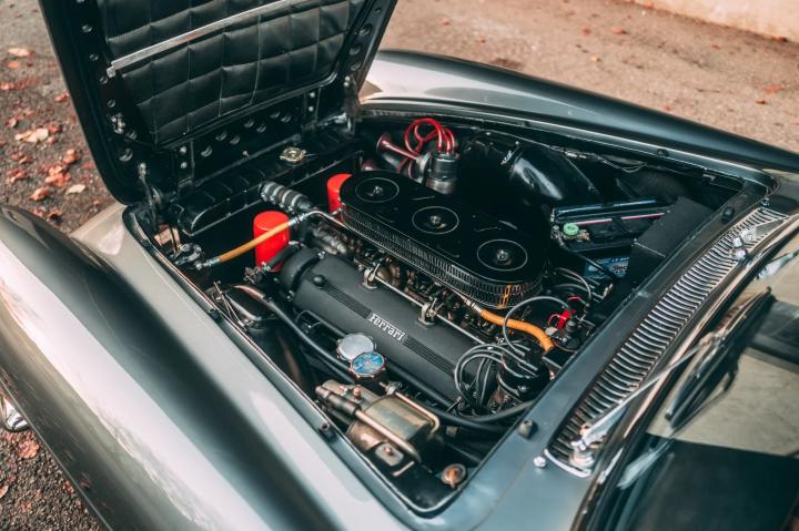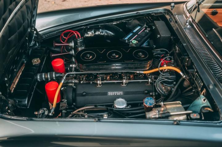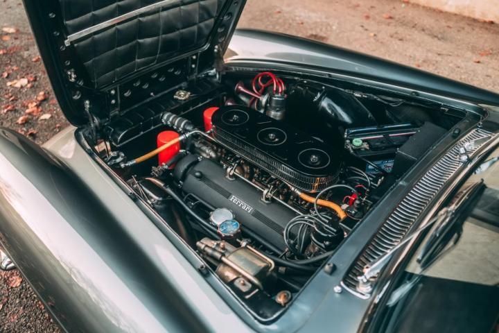 This Ferrari 250 GTE, chassis 2247 GT, is one of the very earliest cars, being the 35th example produced and retaining several features present on the prototypes, most obviously the extended bonnet chrome strip. The car was built with Weber 40 DCL/6 carburettors, more commonly found on competition models, and not the 36 DCS variants found on most of the production.